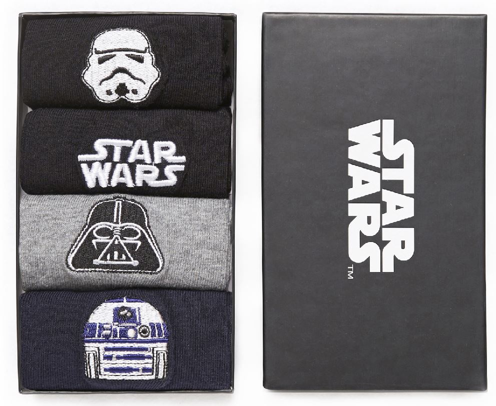 * Tee-shirt Stars Wars™ by Celio : Taille adulte 19,99€ – Taille enfant 14,99€ / Casquettes en coton mélangé – 17,99€ / Batterie téléphone portable : 19,99€ / Portefeuille – 15,99€ / Housse Tablette – 25,99€ / Caleçon – 13,99€.
