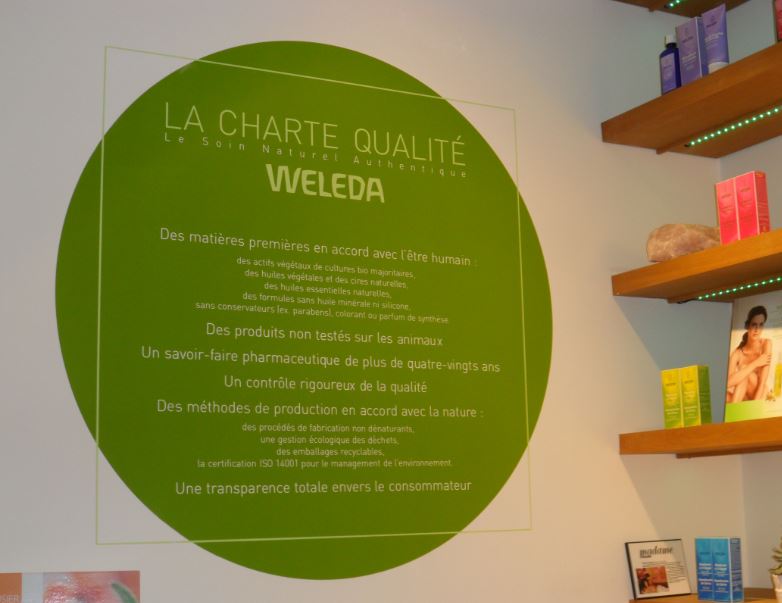 Si vous êtes sur Paris et à proximité de l’Avenue des Champs Elysées ? Je ne peux que vous recommander un passage par l’espace Weleda situé à quelques pas de là, au 10 Avenue Franklin Delano Roosevelt, Paris 8ème. Un véritable havre de bonheur, ou règne la sérénité. Tous les produits Weleda y sont proposés aussi bien pour l’homme que la femme, les enfants bénéficient également de soins spécifiques. Des soins du corps et du visage y sont prodigués. Le tout dans une atmosphère chaleureuse, agréable et avec un accueil emprunt de sympathie et d’excellence. Rien que le mur végétal se valant d’être vu.