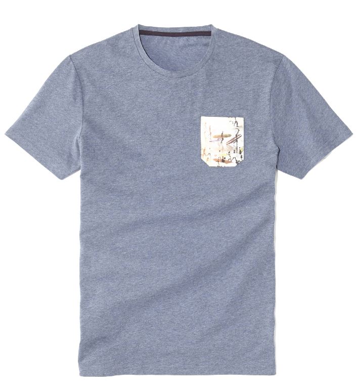 - Au top de la sélection, je retiens dans un style décontracté et un brin plus classique le tee-shirt à poche contracté Longboard, coupe droite à manches courtes. (photo 1) Couleur marine. Un léger regret néanmoins sa composition à 70% acrylique (j’ai une nette préférence pour le 100% coton). Dispo du S au XL à 14,39 € au lieu de 14,99 €.