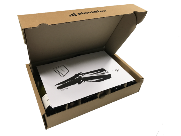 Pour la Saint Valentin, Pinot Bleu, une jeune startup proposant une application sous iOS et Androïd, édite 2 coffrets de vins en éditions limitées, conjointement avec l’illustratrice Élodie Clavier