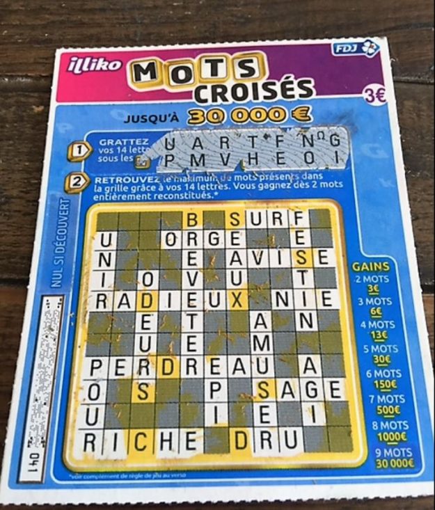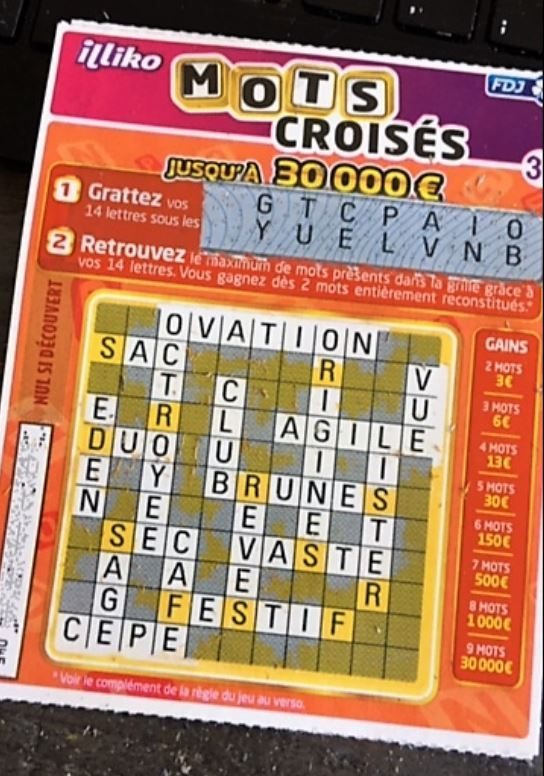 hier j’ai gratté plus de six mots dans le jeu 2 et pourtant je n’ai gagné que 20 euros.