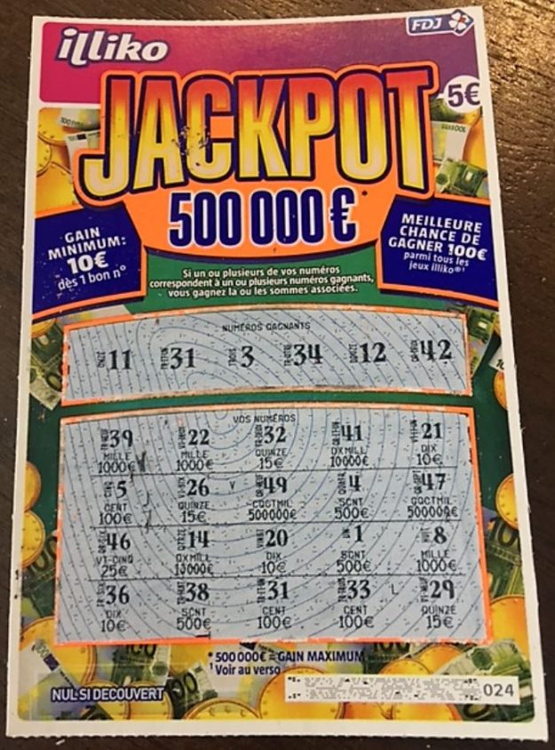 Autre jeu à 5 euros, le Jackpot ! Offrant, la meilleure chance de gagner 100 euros, parmi tous les jeux ILLIKO (jeux à gratter). J’ai effectivement eu cette possibilité à plusieurs reprises…